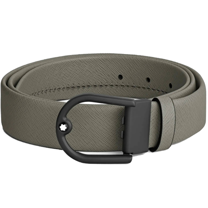 Кожаный ремень 35 мм из кожи серого цвета, пряжка в форме подковы от магазина премиальных ручек Premium Pens в Бердске.