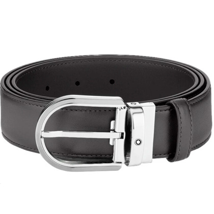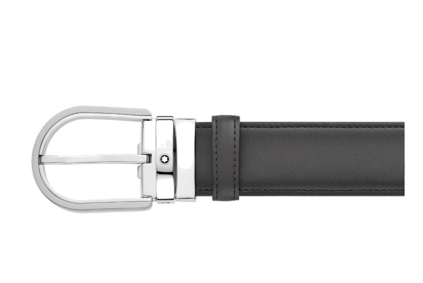 Кожаный ремень с пряжкой в форме подковы серого цвета 35 мм от магазина премиальных ручек Premium Pens в Бердске.